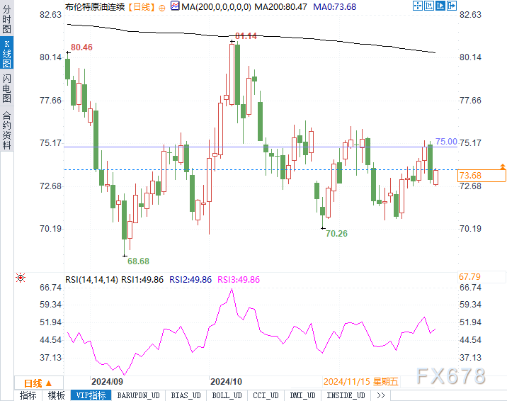 原油市场周二小幅反弹,布伦特原油连续合约上涨0.61%,至73.55美元/桶;美原油连续合约上涨0.78%,报69.47美元/桶。此前一天,由于以色列和黎巴嫩真主党接近达成停火协议,油价曾大幅下挫。尽管市场普遍认为这一地缘冲突尚未对供应链构成重大威胁,停火消息仍削弱了油市的风险溢价。分析人士认为,周一的市场反应可能有些过度,油价现阶段的反弹属于技术性修正。
