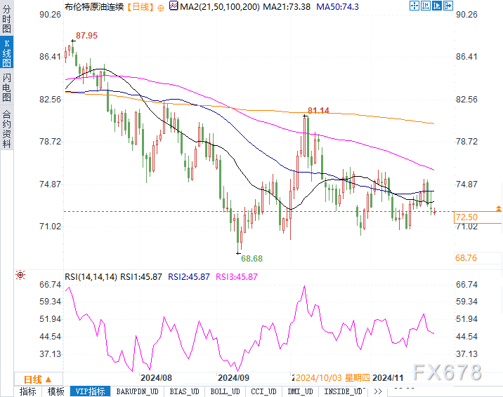 布伦特原油目前交投于每桶72.46美元,日内微跌0.43%;美原油则微涨0.26%,报69.95美元/桶。中东局势暂时缓解对原油价格形成一定压制,但OPEC+可能延迟增产计划的传闻令市场保持谨慎。