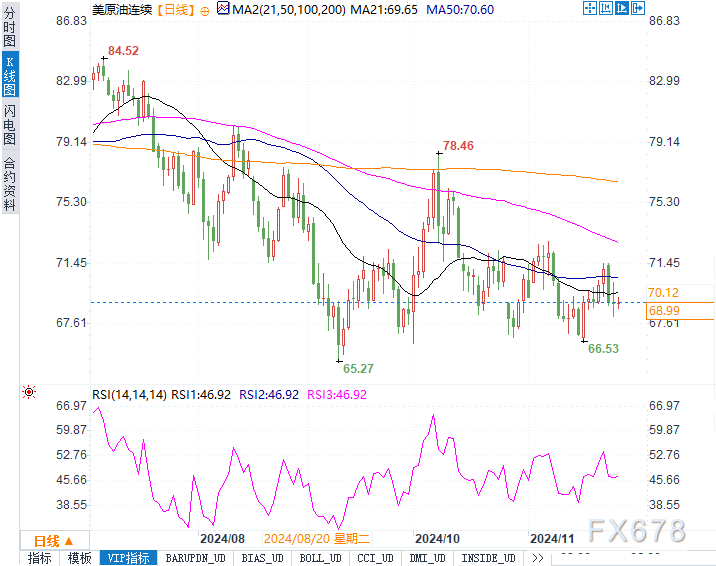 市场人士分析指出,OPEC+内部或倾向于推迟原计划于明年1月实施的增产行动,这一举措旨在应对需求低迷及非OPEC产油国增产的压力。与此同时,美国上周原油库存大幅减少近600万桶的消息支撑了短期油价,但考虑到北半球冬季需求的不确定性,市场预计油价将在65-70美元之间震荡。