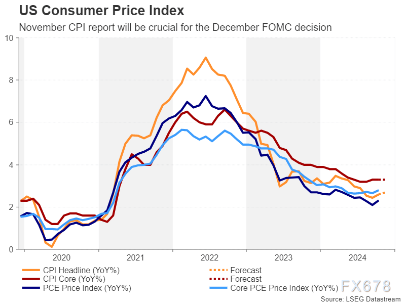 2024年的央行的最后一次政策决定将影响市场情绪,澳洲联储、加拿大央行、瑞士央行和欧洲央行都在会议议程上。由于美联储尚未做出决定,美国CPI报告也将至关重要。