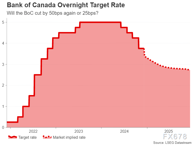 因此,周三关于降息25个基点还是50个基点的决定可能会非常接近,加元面临的风险是对称的。