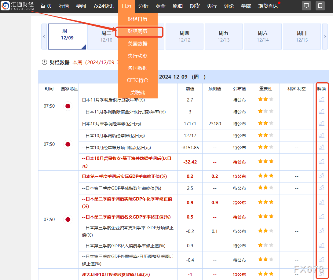 下周,日本将发布第三季度的修订GDP数据。如果修订数据继续显示经济增长,可能会为日元提供支持。如果经济增长放缓,可能会对日元产生一定压力。市场密切关注这一数据,以判断日本央行的货币政策走向。