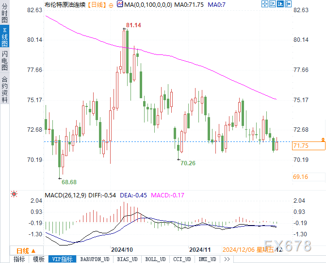 今日,布伦特原油和美原油价格均小幅反弹,分别上涨1.04%和1.09%。推动因素主要是中央政治局会议提出明年货币政策转向“适度宽松”,这是自2010年以来首次采用这一表述。市场普遍认为,中国的政策转向有助于提振原油需求信心。