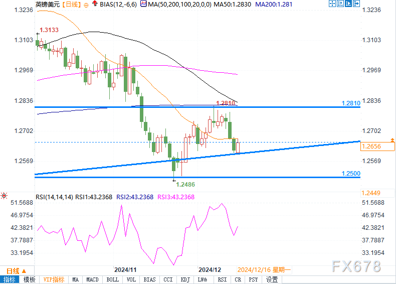 汇通网12月16日讯—— 英国PMI数据显示服务业强劲扩张,一度提振英镑至1.2670,但制造业表现疲弱。市场本周聚焦美联储与英国央行利率决议及2025年政策路径预期。技术面支撑与阻力位置明确,波动性或加剧。
