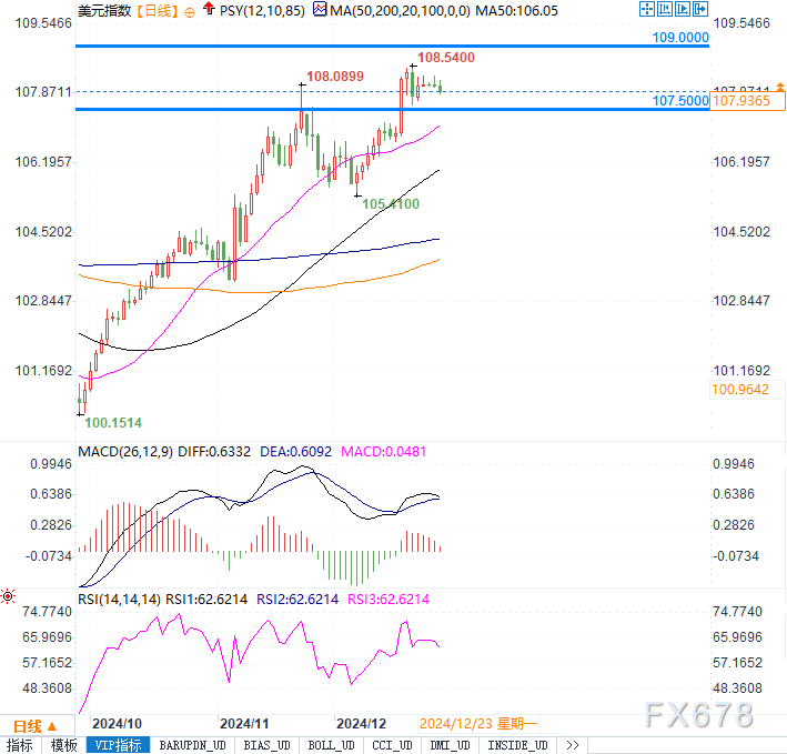 阻力位:美元指数目前位于108.00附近,若突破109.00,将进一步打开上行空间。