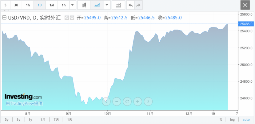消息面上,越南央行近日宣布,将参考汇率下调至1美元兑24327越南盾的历史低点。越南盾可在参考汇率上下浮动 5%。