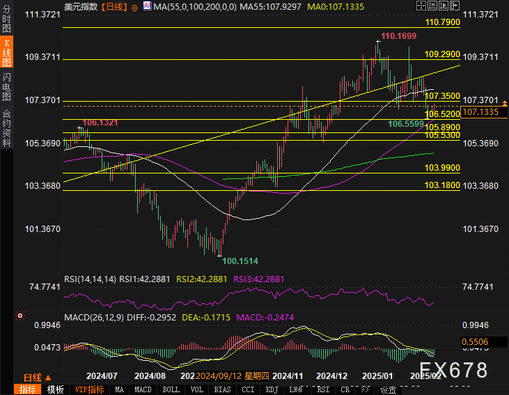 展望未来,美元的短期走势将继续受到特朗普关税言论和俄乌局势的影响。关税威胁和地缘政治风险可能会继续扰动市场,但总体来看,美元仍然处于一个震荡整理的区间,缺乏明确的方向。美元指数若突破107.35,将可能测试更高的阻力位,而若跌破106.52,则可能会进一步下探106.00区域。