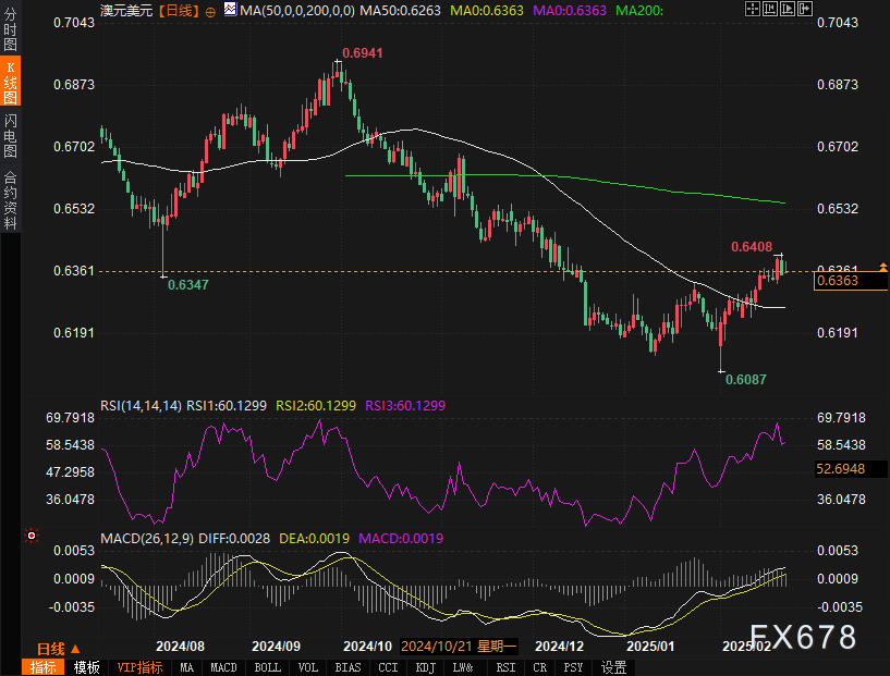 近期全球经济的不确定性加剧,虽然当前并未完全爆发全面的贸易冲突,但市场对关税问题的担忧依然笼罩着全球经济。这对澳大利亚经济产生了直接影响。作为大宗商品的出口国,澳大利亚的经济与全球贸易形势息息相关,让澳元更加脆弱。