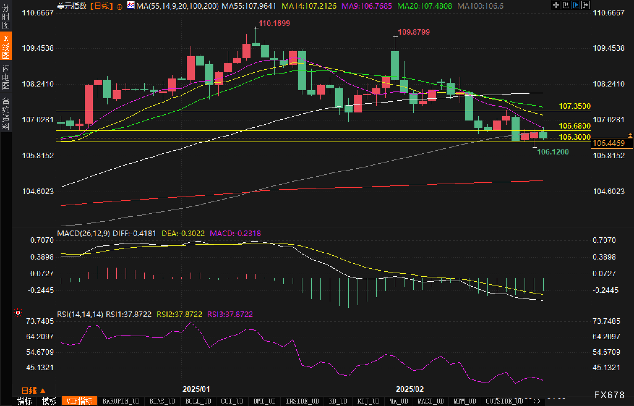 周二(2月25日)美市盘前,在全球市场动荡的背景下,美元指数(DXY)目前维持在106.40附近。尽管股市、黄金和债券市场都经历了显著波动,但美元指数似乎未能引起市场的太多关注。美元指数的表现相对平淡,市场情绪受到全球经济不确定性以及即将发布的重要经济数据的影响。
