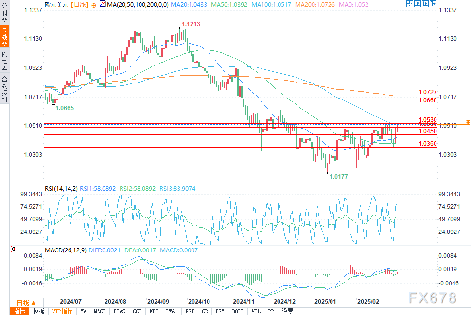 下方来看,1.0450是近期的重要支撑位,50日均线是下行关键指标。若跌破1.0360,则可能令谨慎的看涨预期失效。