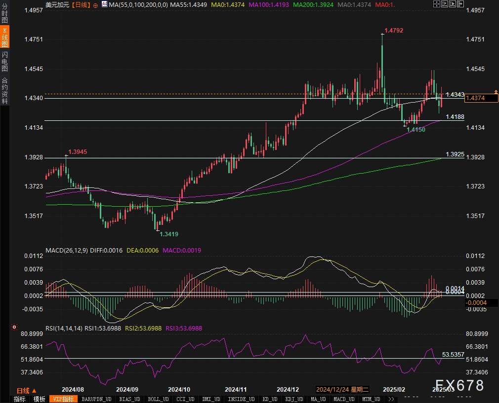 阻力位:1.4450(前高)、1.4500(整数位);支撑位:1.4300(周内低点)。