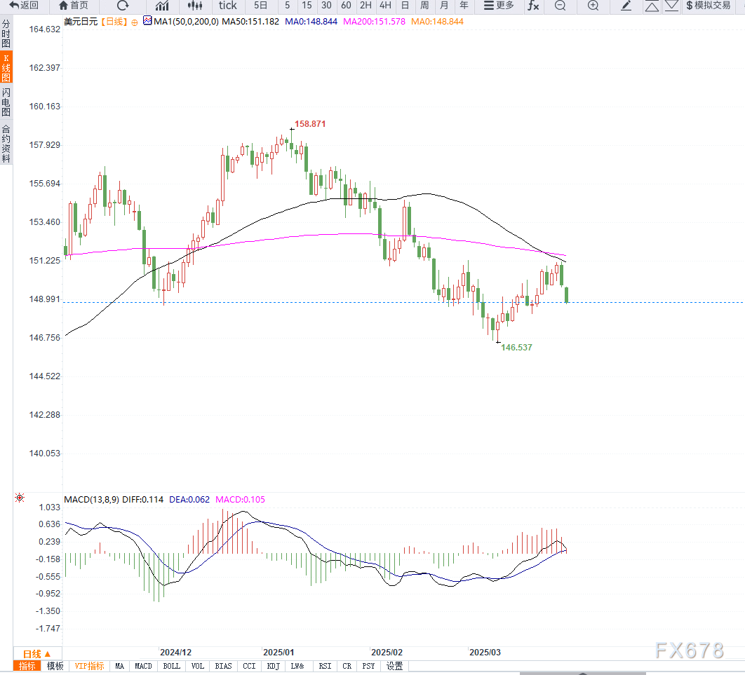 由于投资者对特朗普可能实施的关税措施感到忧虑,市场避险情绪急剧上升。周一,美日大幅下跌至148.80,跌幅一度达到0.72%。周五,美国经济数据显示核心通胀超出预期,推动了对滞涨的担忧,进而推动日元上涨0.82%。