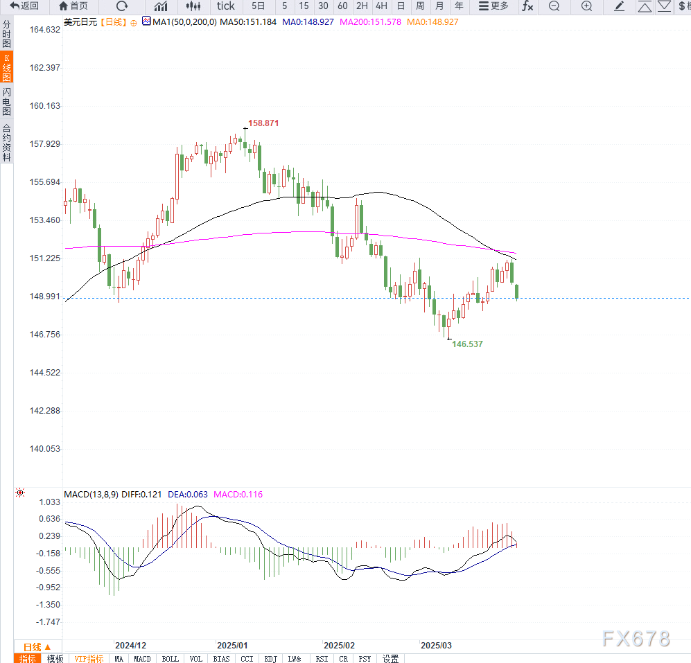 日元近期的强势主要受避险需求上升和日本央行加息预期的推动,而美元则因美国经济放缓担忧和美联储可能的降息预期而承压。特朗普即将宣布的新关税政策和全球贸易紧张局势可能进一步推高避险需求,支撑日元继续走强。