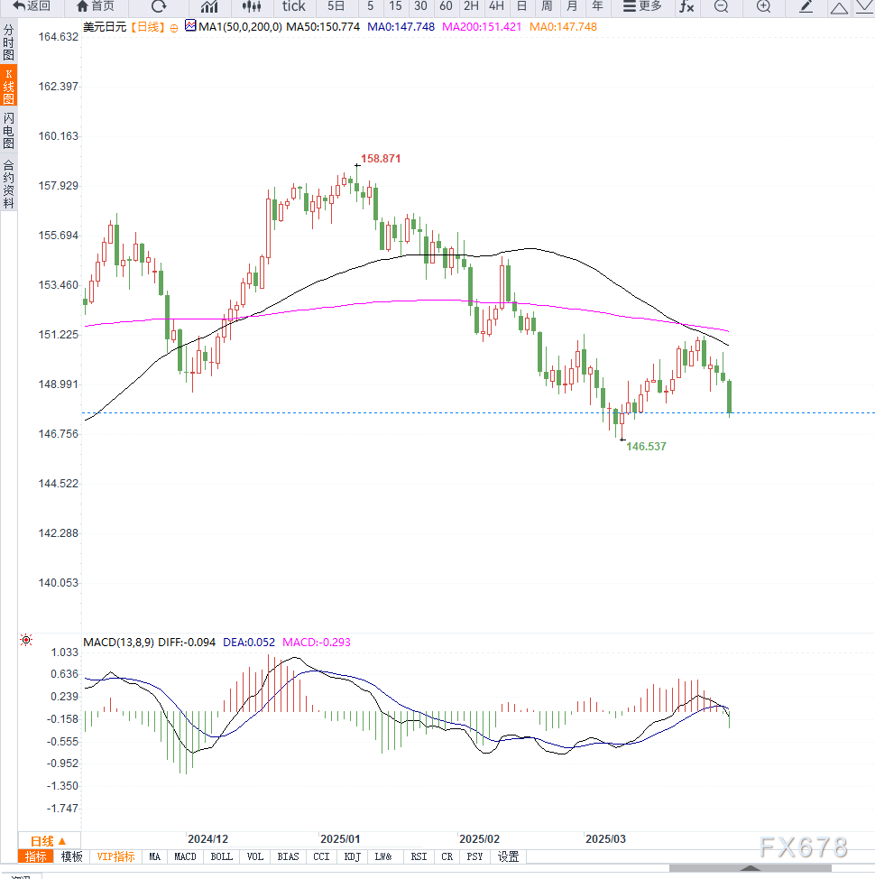 受全球避险情绪推动,日元持续走强,而美日利差缩小、美联储降息预期升温进一步强化了美元兑日元的下行趋势。短期来看,美元兑日元可能继续下探146.50水平,但需关注日本央行的最新立场及美联储的政策调整。