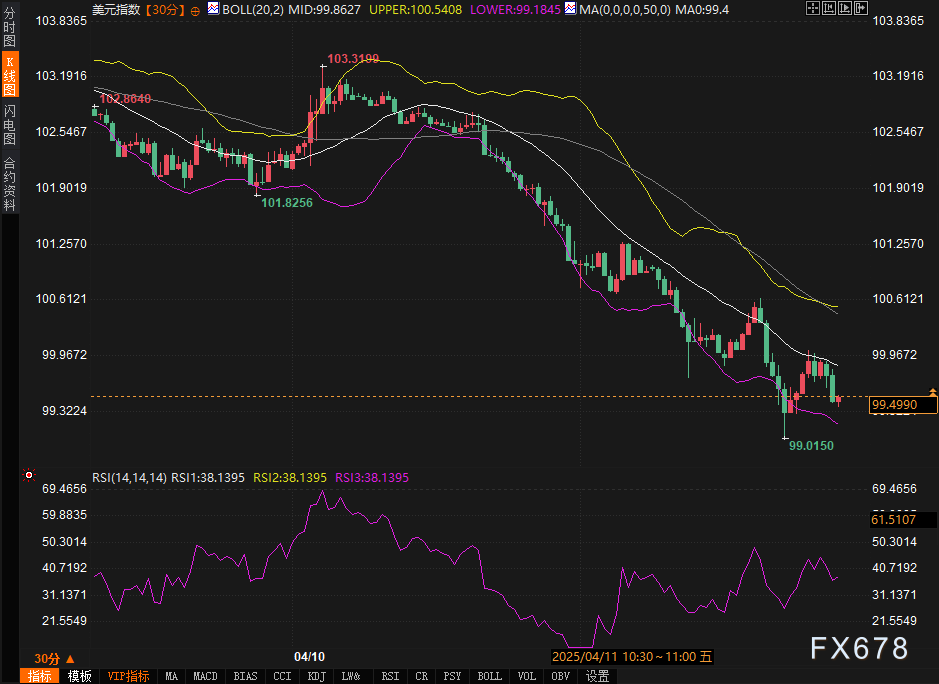 从市场走势看,PPI数据引发的即时反应更多集中在美元和美债收益率的调整上。“美元指数跌至三年低点99.02后略有反弹,但整体熊市倾向未改,技术指标显示卖压依然强劲。”美元走弱短期内可能为黄金和欧元等资产提供支撑,但长期走势仍需观察后续经济数据和政策信号。