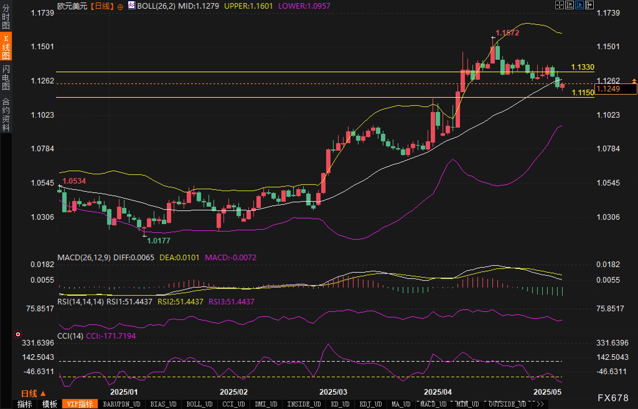 短期展望:欧元兑美元可能继续在1.1150-1.1330区间内震荡整理,关键支撑在1.1150,若跌破可能加速下挫至1.1030;上方阻力首先在1.1300,其次在1.1330区域。美联储官员讲话以及重要经济体贸易谈判进展将是短期内影响汇价的关键因素。