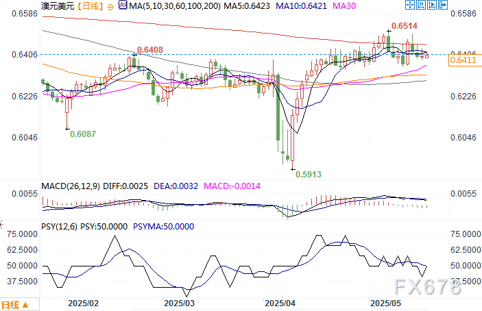 美国政府信用评级意外下调,降低了投资者对较高风险资产的兴趣。除此之外,对美联储进一步降息的押注使美元保持低迷,这反过来可能继续成为澳美货币对的有利因素,让看跌交易者保持谨慎。
