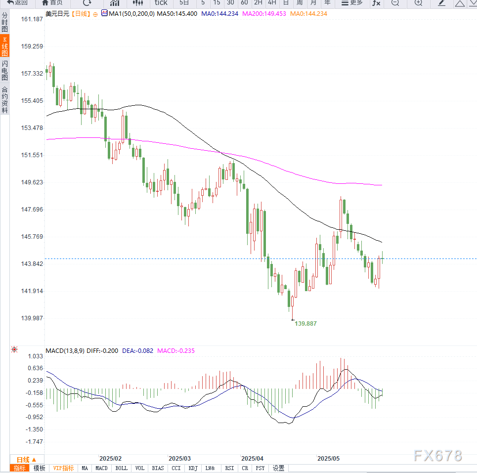 在全球风险偏好回升背景下,美国总统特朗普宣布将对欧盟50%关税的执行时间延至7月9日,也进一步削弱了日元的避险吸引力。
