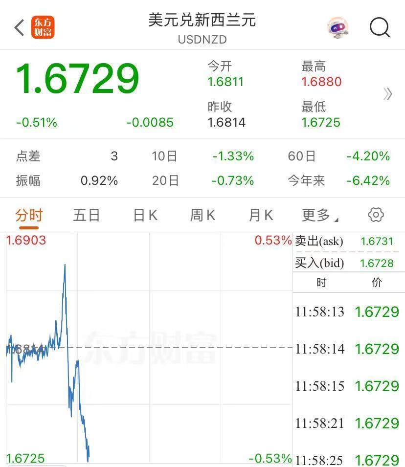 声明发布后,新西兰元短线拉升。