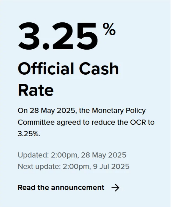 5月28日,新西兰央行将政策利率从3.50%下调至3.25%,为连续第六次降息,符合市场预期。此前,新西兰在10月、11月和2月的会议上分别下调了50个基点,自去年8月以来,央行已累计降息200个基点。