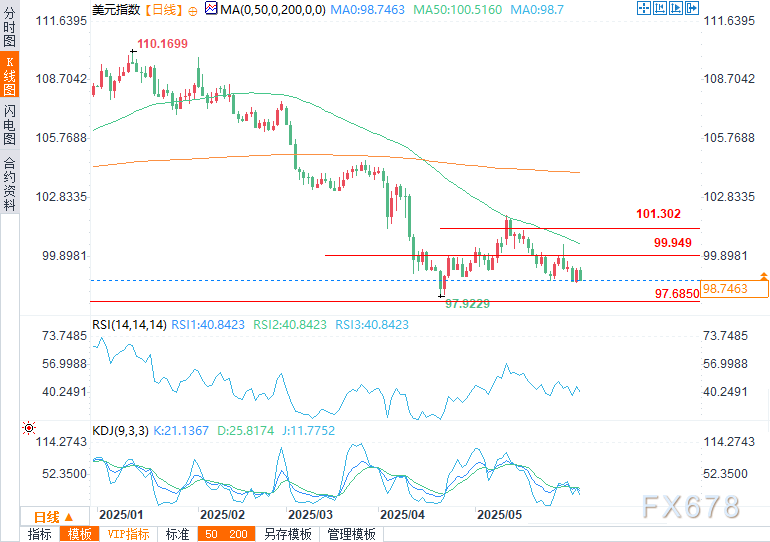 周三(6月4日)美国时段,受令人失望的劳动力和服务业数据、美联储面临的新一轮政治压力以及不断升级的贸易紧张局势推动,美元指数(DXY)下滑。尽管该指数仍在周二的区间内,但技术前景已变得脆弱,明显偏向看跌。
