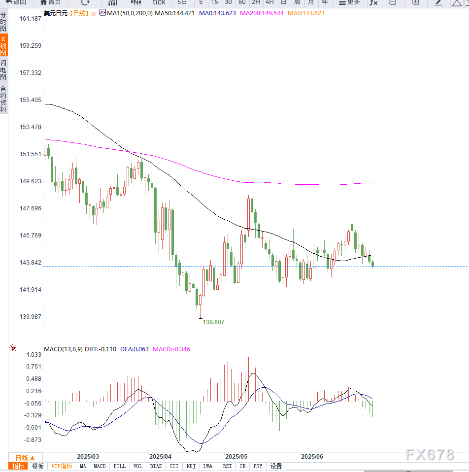 若跌破143.75上周低点,将加速下行测试143.00与142.75-142.70关键支撑区间。