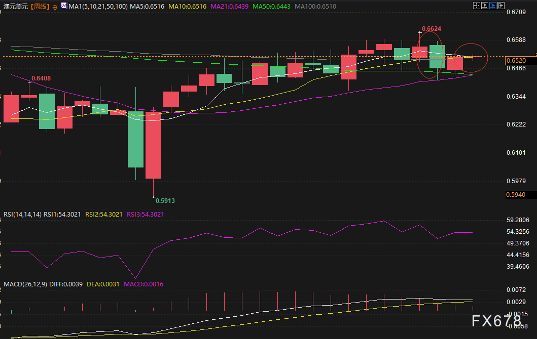 (澳元兑美元周线图,来源:易汇通)