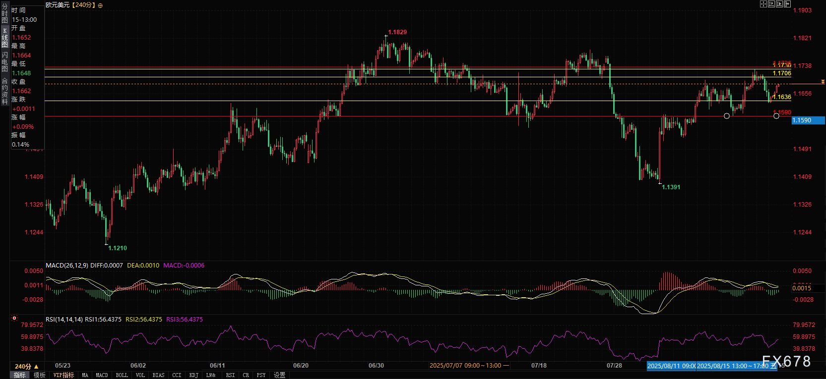 上行方面,1.1735趋势线构成关键阻力——该位不仅在7月多次压制汇价,8月13日也成功阻截涨势。若有效突破该阻力,将标志7月初以来修正行情的终结,后市目标依次上看7月24日高点1.1789和7月1日高点1.1830。