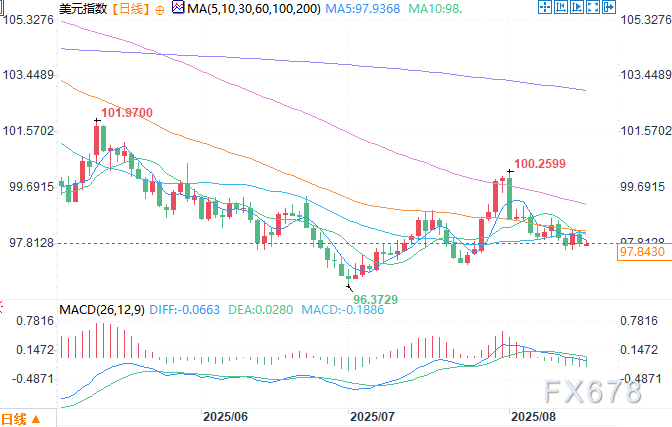 北京时间8月18日13:02 美元指数 报 97.81。