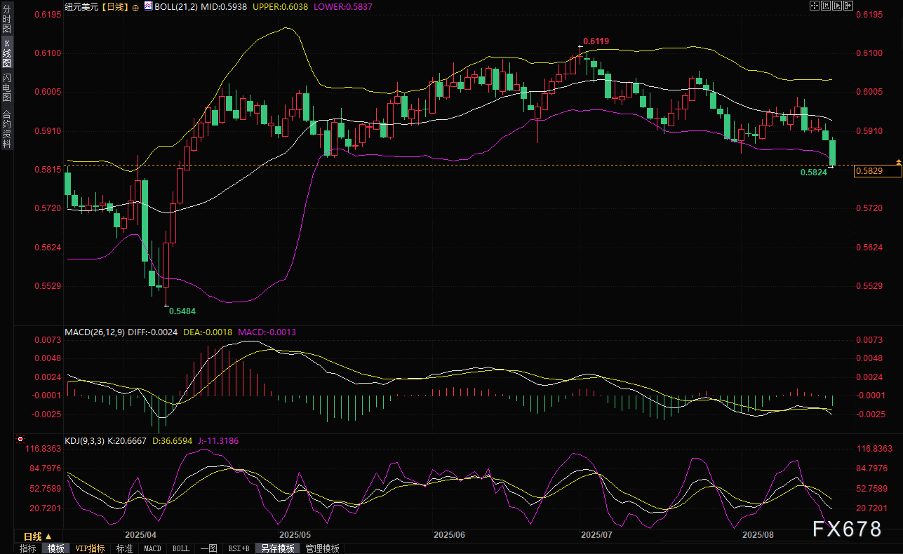 周三(8月20日)新西兰联储如期降息25个基点,将官方现金利率(OCR)降至3%,纽元兑美元短线下跌逾60点,创逾4个月新低至0.5824,跌幅约1.17%,或将录得逾四个月最大单日跌幅,因新西兰联储称,新西兰第二季经济复苏陷入停滞,有进一步宽松的空间。