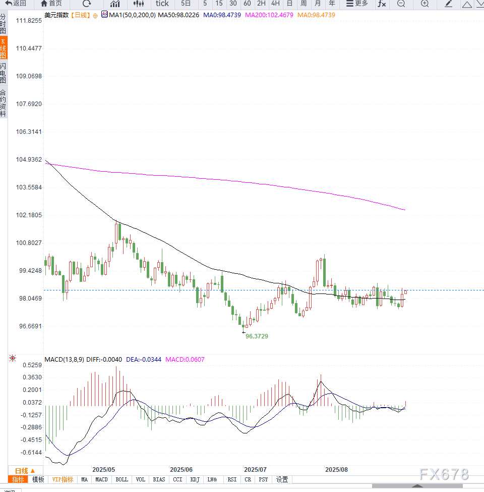 xm交易-避险情绪支撑美元指数上涨至98.40,但美联储降息预期与贸易担忧情绪限制上行空间