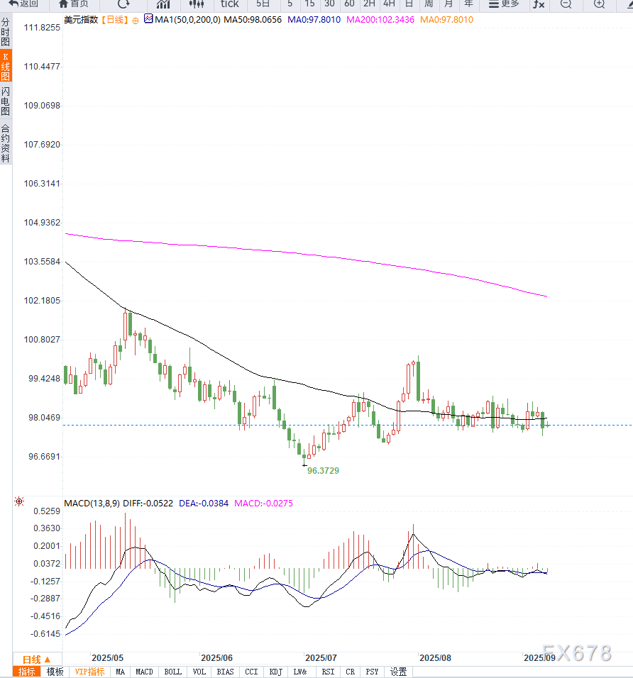 编辑观点:美元指数当前处于“数据疲弱”与“通胀担忧”的拉锯格局。市场几乎已经消化9月降息的可能性,未来美元的走势将取决于美联储官员的进一步表态及核心通胀数据。短期内,DXY预计维持在97.50至98.50区间震荡整理。