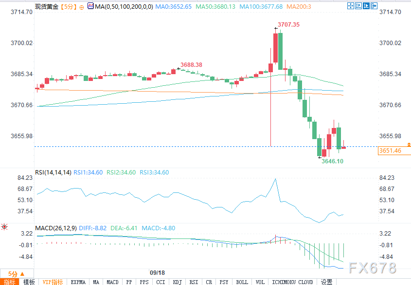 (现货黄金5分钟图 来源:易汇通)
