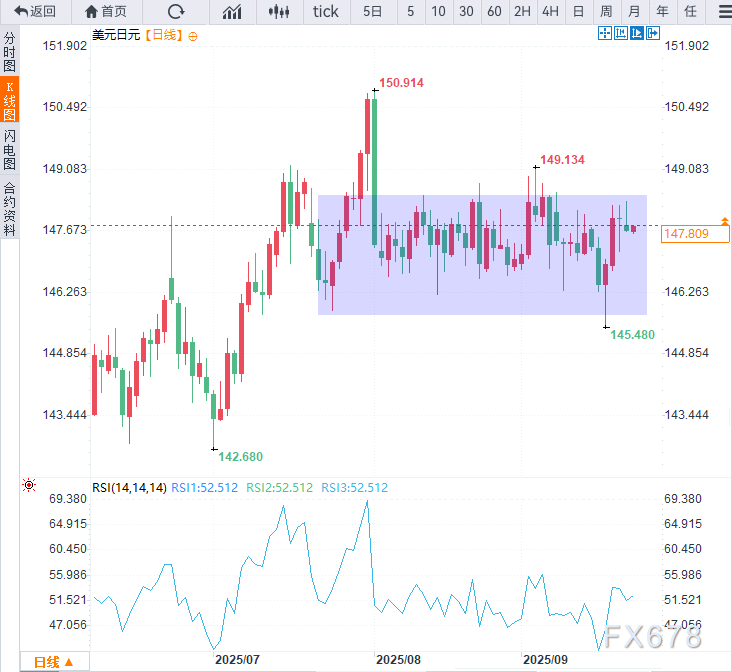 尽管上周出现连续两个交易日(9月17-18日)的强势反弹推动汇价脱离近两个月低点(145.48),似乎倾向于最终实现看涨突破,但也可认为突破本应已经发生。在明确突破出现之前,当前区间格局依然有效,后续汇价或持续在此区间震荡。