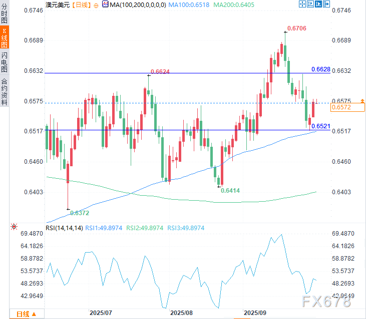 若澳洲联储坚持其对进一步宽松持谨慎态度,同时维持“依赖数据”的立场,随着11月降息概率降低,澳元可能重获买盘支撑。反之,若布洛克表达对美国关税政策及劳动力市场拖累经济前景的担忧,市场或将本次按兵不动解读为鸽派信号,为11月降息打开大门。此种情境下,澳元空头可能重新掌控局面。