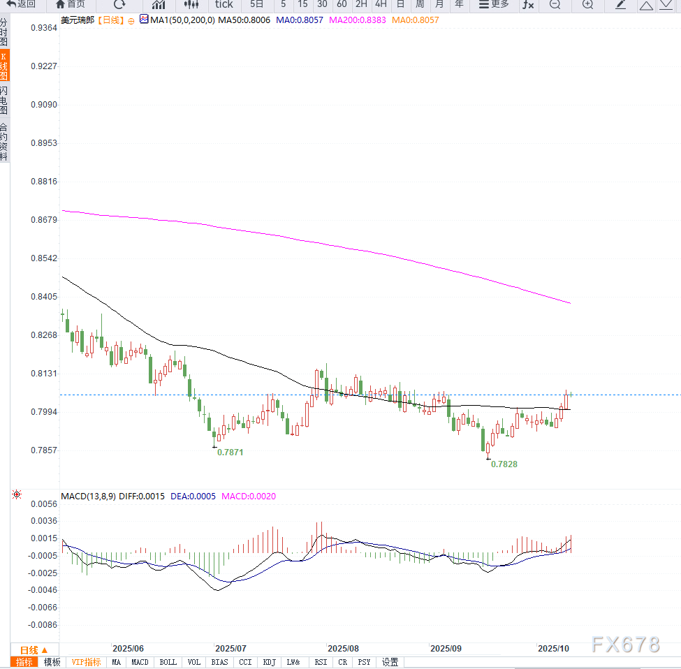 当前美元兑瑞郎走势展现出“基本面与情绪双支撑”的格局。美联储降息并未削弱美元的吸引力,反而因全球风险情绪升温而强化其避险地位。