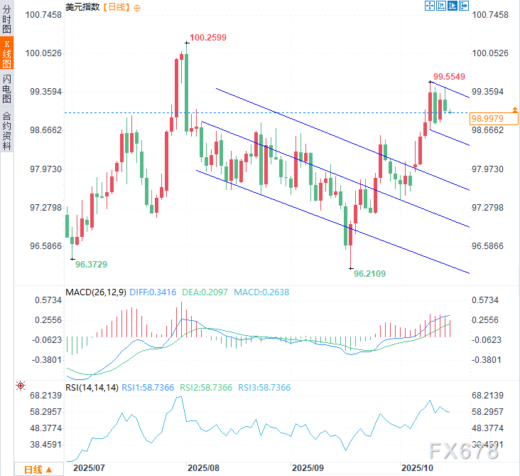 周二(10月14日)晚间美联储主席杰罗姆·鲍威尔释放信号称,10月降息仍在考虑之中,量化紧缩政策也可能接近尾声,美元随后震荡走软。周三亚市早盘时段,美元基本守住前一交易日跌幅,于99.00附近震荡。