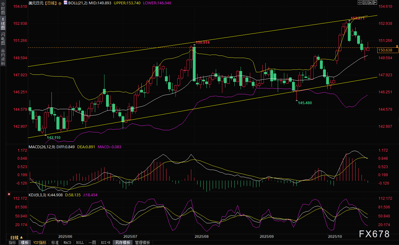 日本政坛的最新动态为货币政策增添了新的不确定性。据报道,自民党总裁高市早苗已获得关键政治支持,几乎确定将成为日本下一任首相。日本国会预计将于10月21日投票选出新首相,而高市早苗主张宽松的货币政策和财政刺激措施,这一立场与日本央行当前的紧缩倾向形成鲜明对比。市场迅速做出反应,美元/日元和日圆交叉盘在周一(10月20日)早盘一度跳涨,美元/日元圆从150.45升至151.20,但随后回落至150.60附近。分析人士指出,高市上台可能推动所谓的“高市交易”,即股市上涨、日元走弱的趋势。