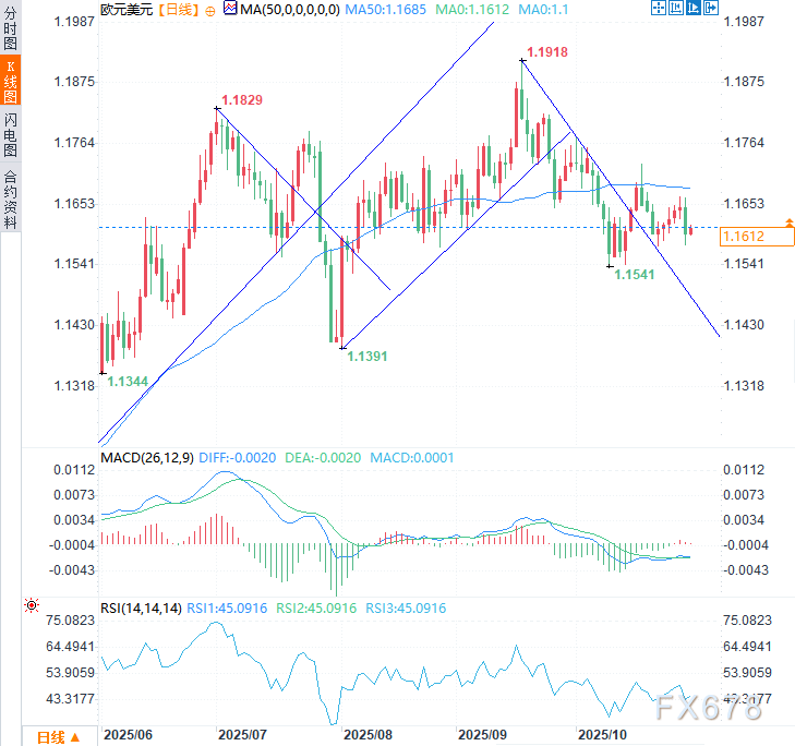 观察欧元/美元日线图,该货币对本周初曾试图突破1.1650阻力位并站稳其上方未果,最终因杰罗姆·鲍威尔关于“美联储12月降息远非既定事实”的鹰派表态导致空头占据上风。