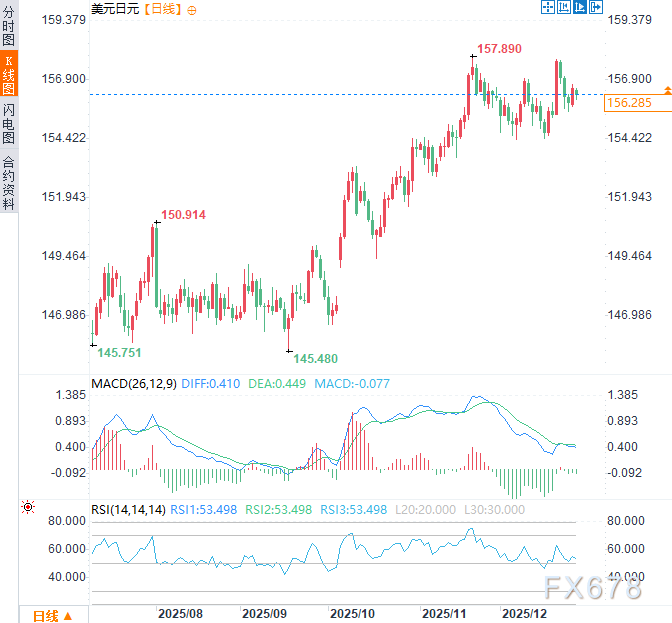 周一(12月29日)美元兑日元小幅走低,目前交投于156.20附近,跌幅约0.20%,因日元走强,上周五日元曾大幅下跌。日元此番回升得益于日本央行释放的新信号,暗示可能进一步加息。